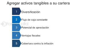 - Los activos tangibles, aunque menos líquidos, ofrecen estabilidad y protección frente a la inflación.