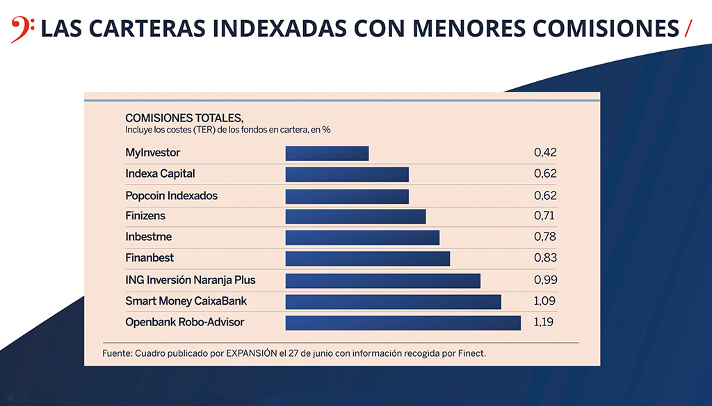 Dependiendo de si la cartera usa fondos indexados o ETFs, esta comisión —aunque baja— se añade a la comisión total.